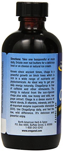 -. Feature : An ideal way to get your daily energy naturally, chagasyrup is free of caffeine and other stimulants / The energy is natural from the sun-ripened chaga plus wild, raw honey and wild, raw grape extract / Chaga is a dense source of natural sterols, B vitamins, minerals and the all important enzyme superoxide dismutase