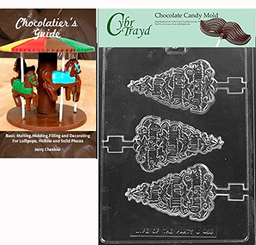 CybrTrayd Very Merry Christmas Lolly Chocolate Candy Mold with Chocolatier's Guide Instructions Manual, Clear