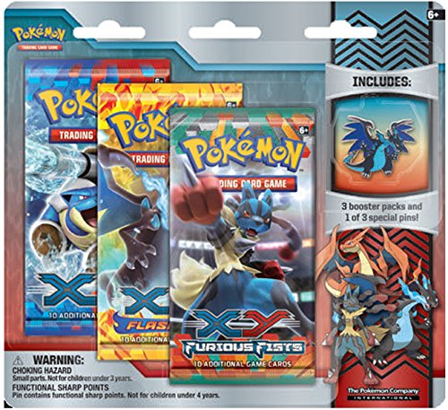 -. Binding : Toy -. Brand : Pokémon -. EAN : 5055521339219 -. Feature : Brand New Official Item / Comes with 3 Booster Packs / Comes with 1.25" Metal Pin -. Label : Pokemon -. Manufacturer : Pokemon -. PackageQuantity : 1 -. ProductGroup : Toy -. ProductTypeName : TOYS_AND_GAMES -. Publisher : Pokemon -. Studio : Pokemon -. Title : Pokemon XY Flashfire Trading Card Game Booster Pack Pin Set- Mega Charizard X