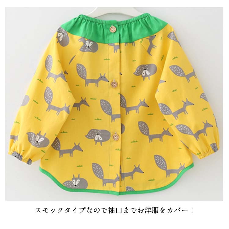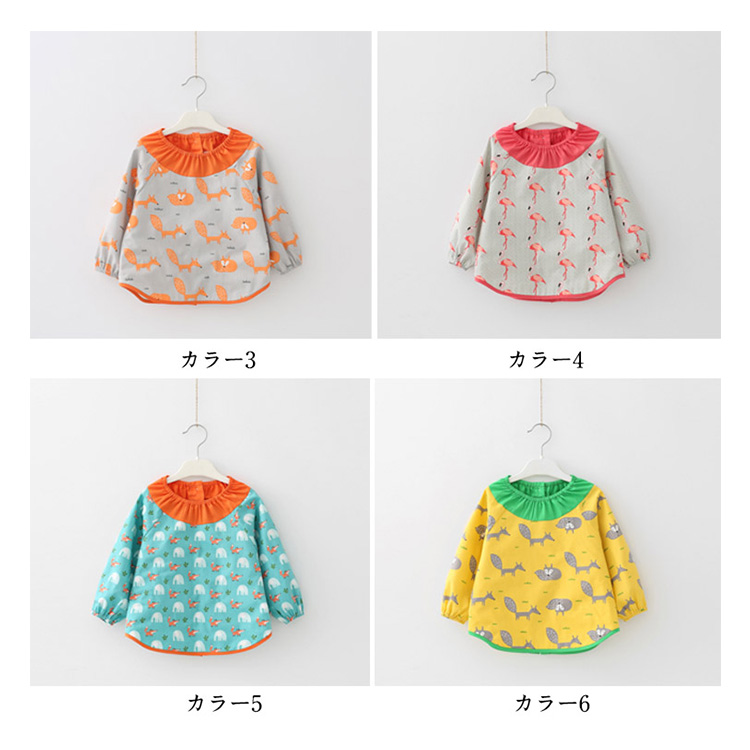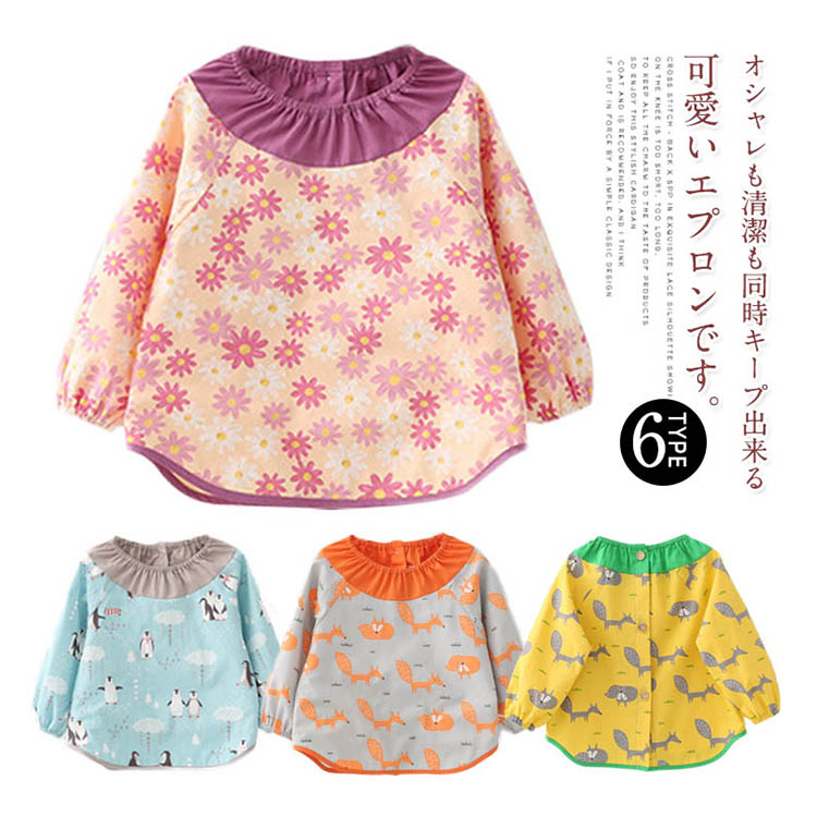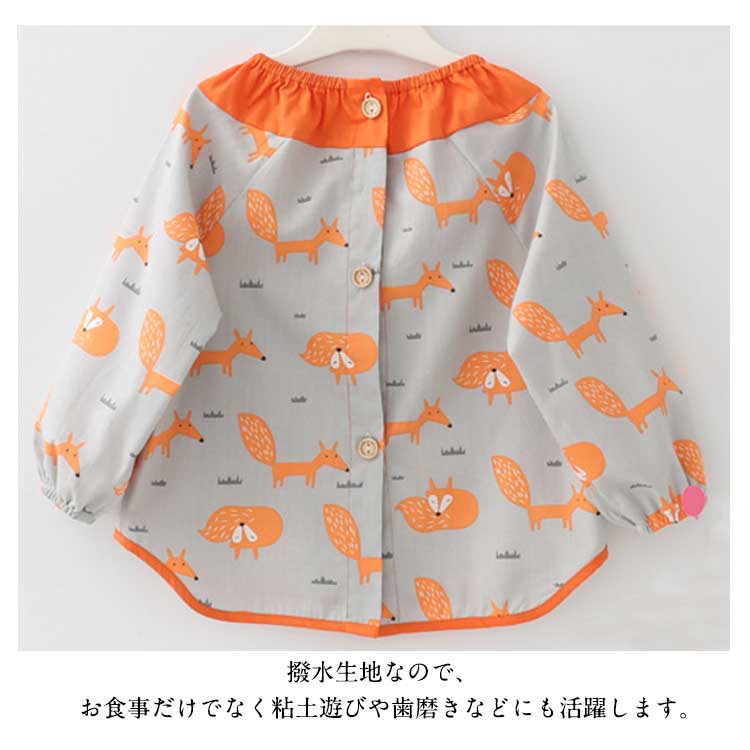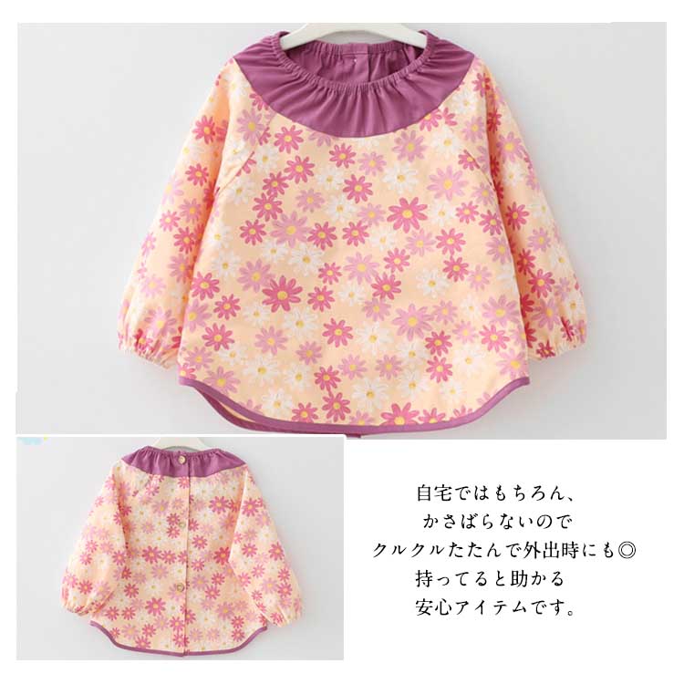 | オシャレも清潔も同時キープ出来る可愛いエプロンです。スモックタイプなので袖口までお洋服をカバー!撥水生地なので、お食事だけでなく粘土遊びや歯磨きなどにも活躍します。自宅ではもちろん、かさばらないのでクルクルたたんで外出時にも◎持ってると助かる安心アイテムです。 | |