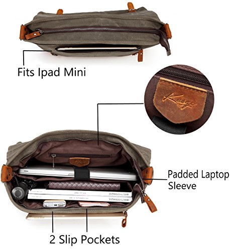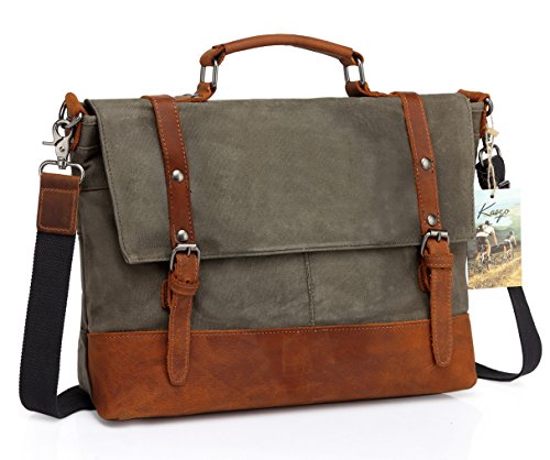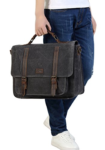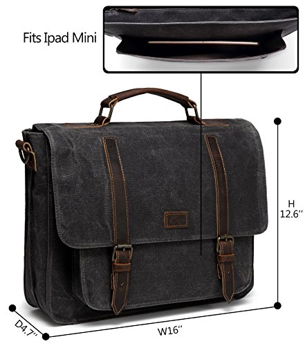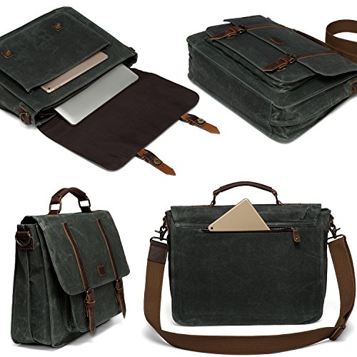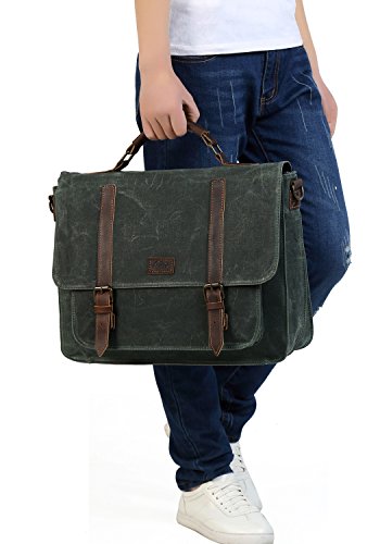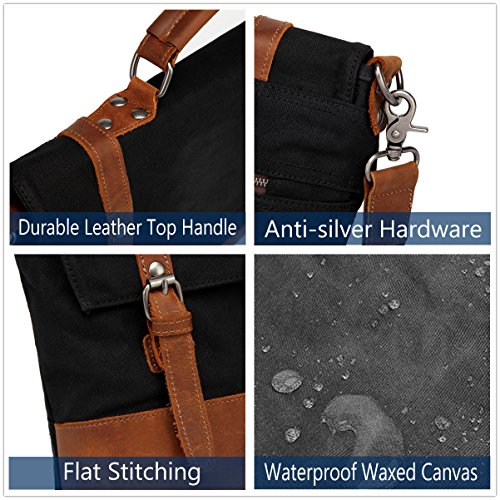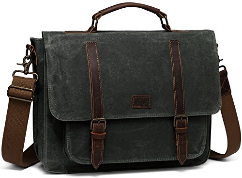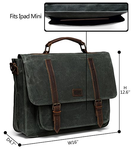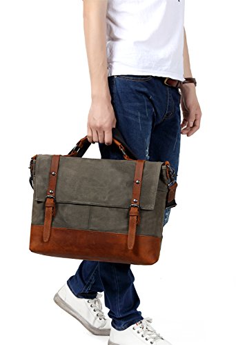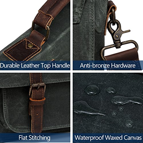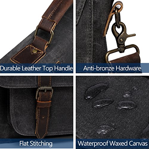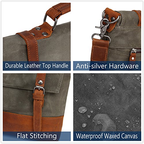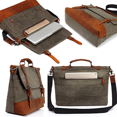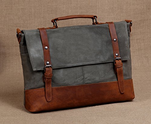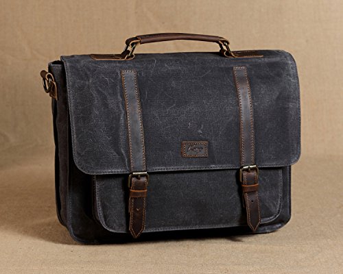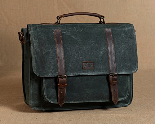Product Details The leather messenger bag is timeless.Like old wine, the waxed canvas and the leather evolve with character over time that remind you of every journey that you have taken. It is made of heave weight ,rugged, heavy-duty, weather-resistant waxed cotton canvas.Pack bottom ,trim and top handle made of genuine leather.Reinforced leather patched the waxed canvas makes the messenger bag looks elegant, casual, chic and fabulous.