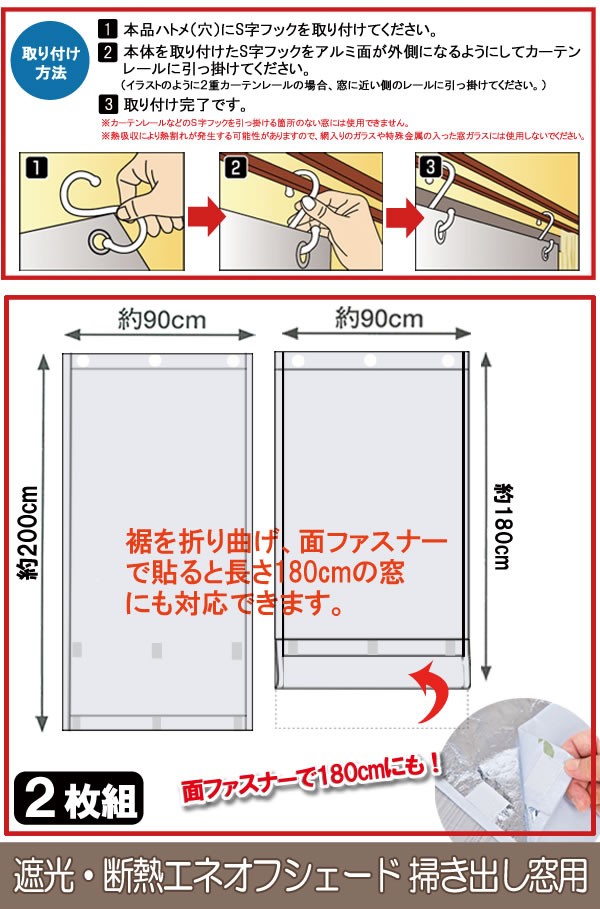 | <h1>夏の暑さ、冬の防寒対策に!1年中使える省エネ対策エネオフシェード!遮光率約99%!多重構造で効率よく遮光、遮熱。付属のS字フックでカーテンレールに取り付けるだけ!</h1> |