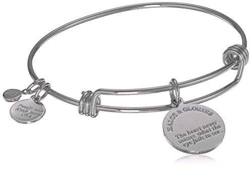 Shiny silver brass bangle with epoxied brass charm