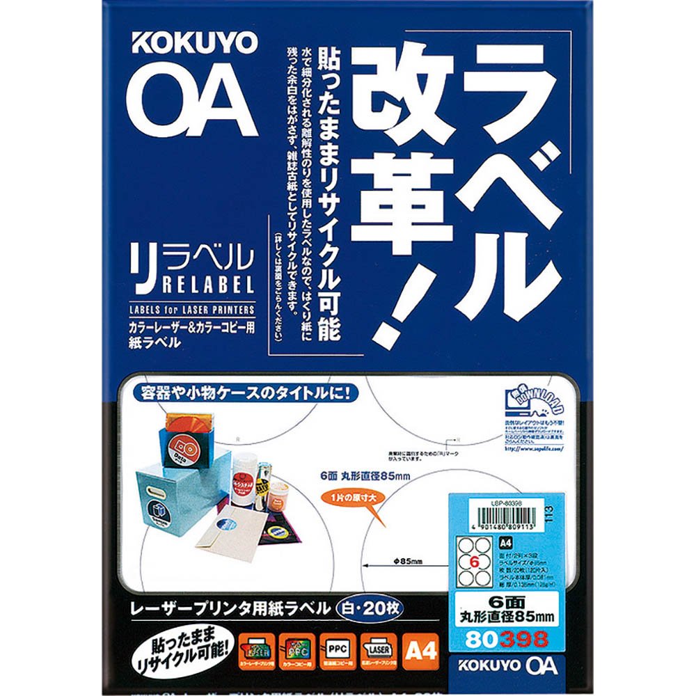 Kokuyo color laser and color copy paper label relabel A4 6 Menmaru type diameter 85mm 20 pieces of LBP-80398 (japan import)