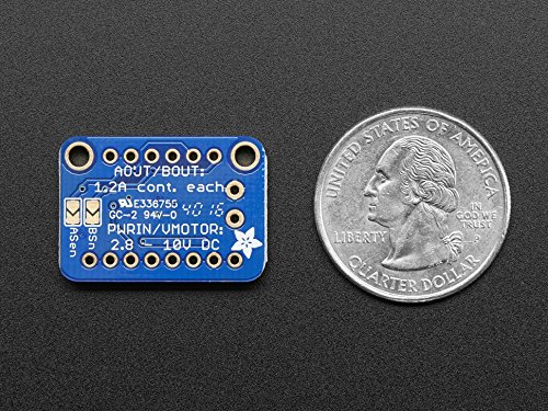 Spin two DC motors or step one bi-polar or uni-polar stepper with up to 1.2A per channel using the DRV8833. This motor driver chip is a nice alternative to the TB6612 driver. Like that chip, you get 2 full H-bridges, but this chip is better for low voltage uses (can run from 2.7V up to 10.8V motor power) and has built in current limiting capability. We set it up for 1A current limiting so you don't get more than 2A per chip, but you can also disable the current limiting, or change it to a different limit!We solder on DRV8833 onto a breakout board for you here, with a polarity protection FET on the motor voltage input. Each breakout chip contains two full H-bridges (four half H-bridges). That means you can drive two DC motors bi-directionally, or one stepper motor. Just make sure they're good for about 1.2 Amp or less of current, since that's the limit of this chip. They do handle a peak of 2A but that's just for a short amount of time, if you turn off the current limiting we set. What we like most about this particular driver is that it comes with built in kick-back diodes internally so you dont have to worry about the inductive kick damaging your project or driver! You also don't have to worry as much about burning out the chip with overdriving since there is current limiting.