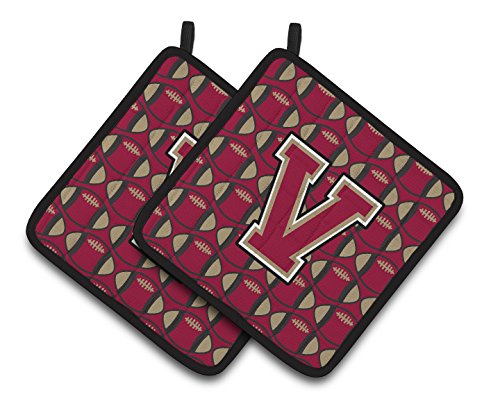 Caroline's Treasures Letter V Football Garnet & Gold Pair of Pot Holders CJ1078-VPTHD, 7.5HX7.5W, Multicolor