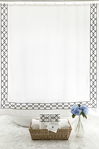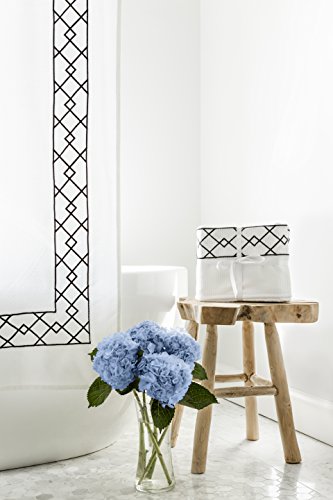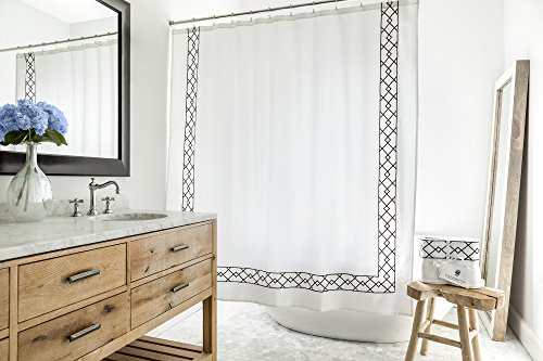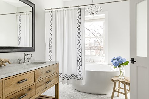 LUXURY LOOK – Woven jacquard fabric that looks and feels elegant; noticeably thicker and softer than other shower curtains. White embroidered curtain holes instead of grommets.