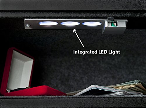 Laser Cut, Fully carpeted, Integrated LED light, Black Textured Military Finish;WARNING: MUST REGISTER AT LEASE 1 FINGERPRINT AND CHANGE THE PIN, SO SAFE IS NO LONGER IN FACTORY DEFAULT MODE!! OR ANYONE CAN OPEN!