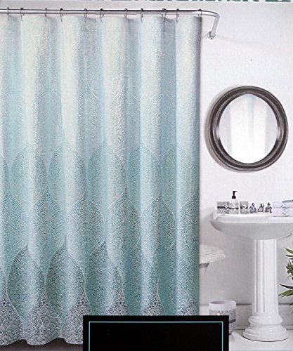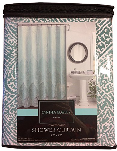 Cynthia Rowley Fabric Shower Curtain Stamped Ombre Teal and White