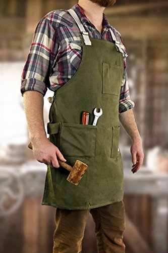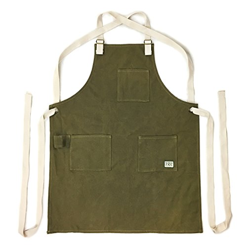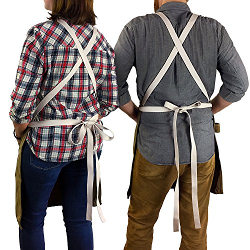 The Ultimate All-Purpose Apron - Durable Waxed Canvas and Cross-Back Straps with no neck loop - Fully Adjustable Work Utility Apron fits all sizes - by H&O Trading Co.