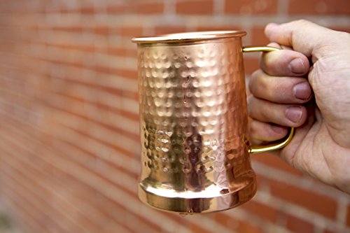 German Style Hammered Copper Beer Stein - 100% Pure Heavy Gauge Copper Beer Mug - 20 oz