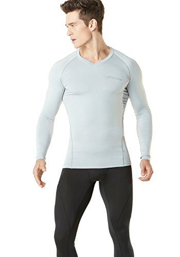 TM-V34-CLG_Medium Tesla Men's Thermal WinterGear Compression Baselayer V Neck Long Sleeve Shirts V34