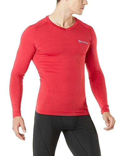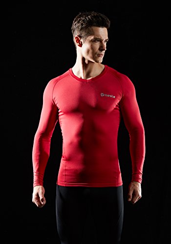 TM-V34-RR_X-Large Tesla Men's Thermal WinterGear Compression Baselayer V Neck Long Sleeve Shirts V34