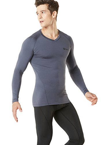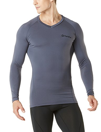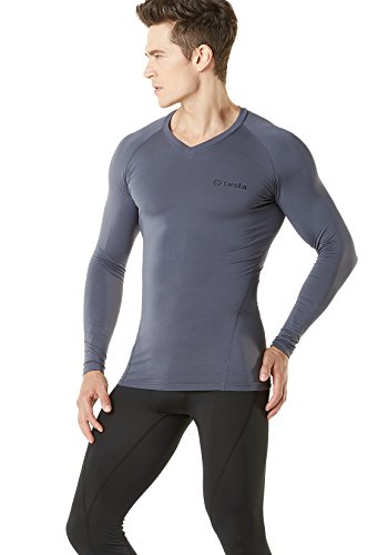 TM-V34-CGY_X-Large Tesla Men's Thermal WinterGear Compression Baselayer V Neck Long Sleeve Shirts V34