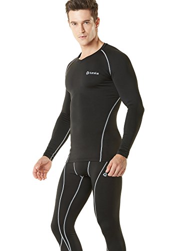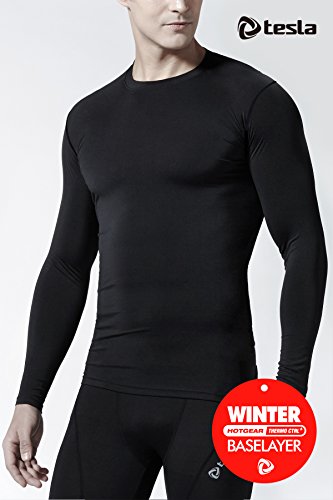 TM-R21-BBK_X-Small Tesla Men's Thermal WinterGear Compression Baselayer Long Sleeve Top R21