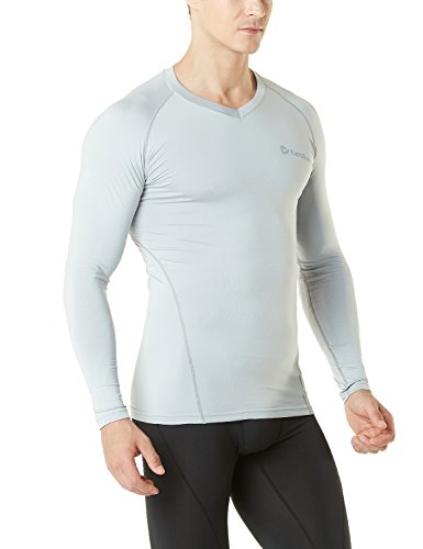 TM-V34-CLG_Large Tesla Men's Thermal WinterGear Compression Baselayer V Neck Long Sleeve Shirts V34