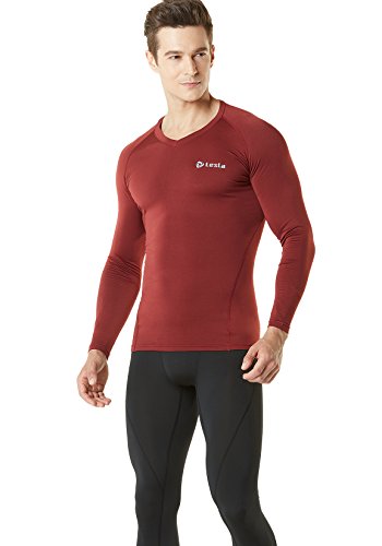 TM-V34-RR_Large Tesla Men's Thermal WinterGear Compression Baselayer V Neck Long Sleeve Shirts V34