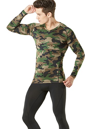 TM-V34-FO_X-Small Tesla Men's Thermal WinterGear Compression Baselayer V Neck Long Sleeve Shirts V34