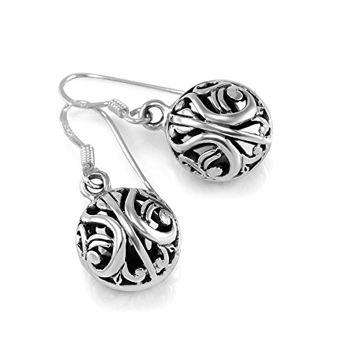These beautiful filigree dangle earrings would be a wonderful addition to any wardrobe. Made from 925 Sterling Silver, stamped 925 in beautiful detail work. Asian Inspired design. The included black velvet pouch makes it a perfect gift for any special occasion.