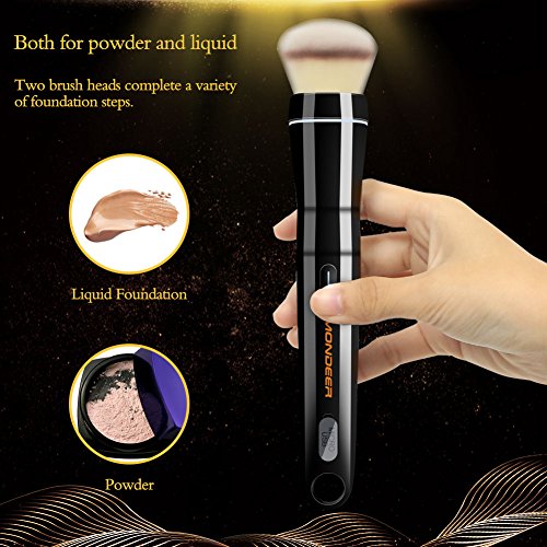 Mondeer Electric makeup brush, Foundation/Blusher (Powder) Brush, Two Brush Heads Included, 360-Degree Rotating Antibiotic Brush, One Gift Box/ Storage Bag Included