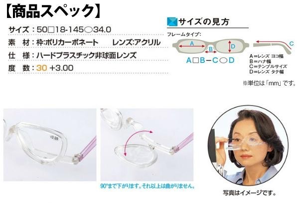 シニアの方々が抱えているメイク時の「見えない」悩みに着目した機能性老眼鏡です。 商品区分/一般医療機器 製造販売許可番号:23B3X00001 届出番号:23B3X00001654321 メーカー名・輸入者/名古屋眼鏡株式会社 製造国/中国 ※サプライヤー直送品 ご注文後2~3営業日後の出荷となります【商品名】お化粧専用老眼鏡 メイクアップグラス・老眼鏡 4600-30