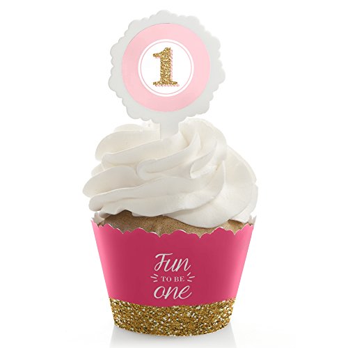 1st Birthday Girl - Fun to be One - Cupcake Wrapper & Pick Birthday Party Kit - Set of 24