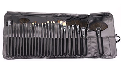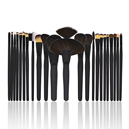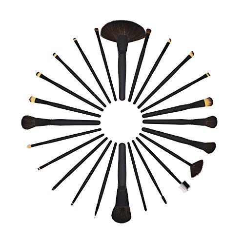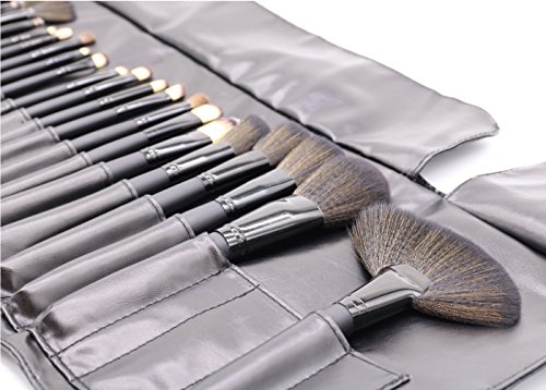 Diolee Makeup Brushes 24 Piece Set Professional Soft Kakubi Wooden Handle Cosmetic Tool Foundation Eyeshadow Eyeliner Lip Brush Kits with Leather Case