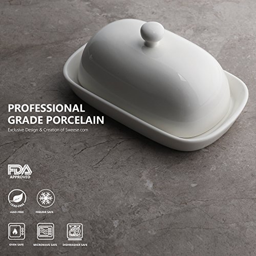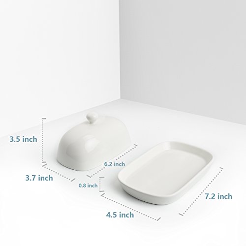 Why Choose Sweese Butter Dish? Advantage Of Sweese Butter Dish - Helps keep your kitchen looking tidy and organized, keeps the pet out of the butter. A Little Knob - Has a little knob on top making it easier to take off the lid, prevents from slipping out of your hand should you get butter on it. Perfect Size - Big enough to allow the butter breathing room. You can fit one stick of butter in this dish easily without having to worry about butter touching the top or sides of the lid. Good quality porcelain - It is more beautiful and safer than the ugly plastic kind of butter dish. The butter dish is made of durable porcelain, chip-resistant and more sturdy than stoneware. Best Gift Option They are packaged in a well-wrapped box, a lovely, graceful shape, no blemishes, the style is clean and simple, fit nicely in the dishwasher. A perfect gift for your friends and family on Housewarming, Wedding party, Mothers' Day, Fathers' Day, Christmas and New Year's Day. YOUR CONFIDENCE ASSURED - PEACE OF MIND GUARANTEE ? 30 Day No-Chip Warranty ? 100% Satisfaction Guarantee 0 |