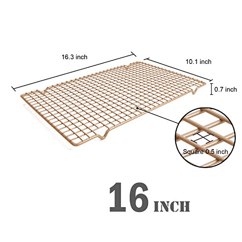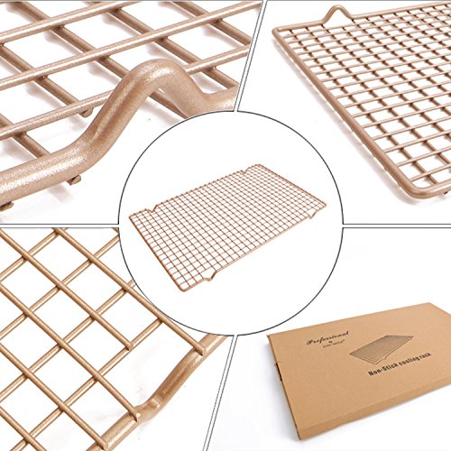 CHEFMADE Non-stick 16 x 10 Inch Wire Cooling Rack, Heavy Duty Bold-Grid Design FDA Approved, Oven Roasting Grilling Baking, Fits Half Sheet Cookie Pan (Champagne Gold)