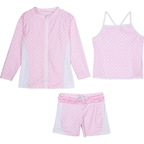 * Award Winning SwimZip Girl Long Sleeve Rash Guard Swimsuit Shorts Set 3 Piece with Tankini and UPF 50+ UV Sun Protective Fabric *