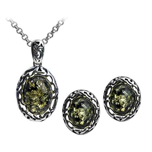 Size of set Earrings L - 0.59inch H - 0.24inch W - 0.49inch Size Pendant L - 1.2inch H - 0.26inch W - 0.63inch. Most of our amber found in Baltic sea area. Baltic sea considered to have biggest deposits of amber and quality of gemstone in this region is better than in any other location. Besides Baltic region there are large deposits of amber in Dominican republic, Columbia and Africa.