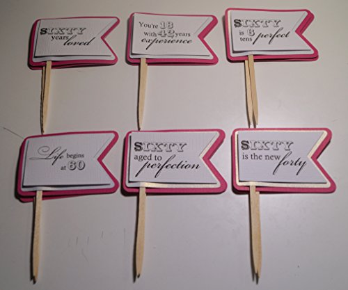 All About Details Taffy Pink 60th Birthday Quotes Cupcake Toppers, Set of 12