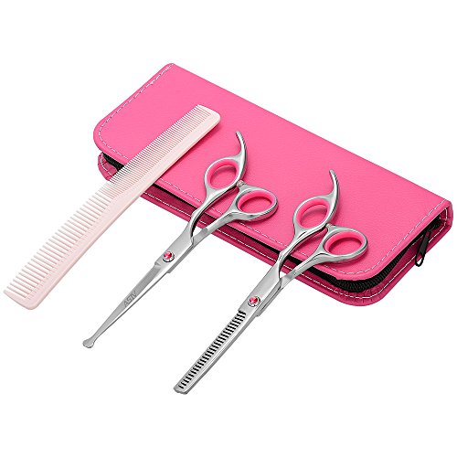 Specifications: Material: Stainless Steel Thinning Rate: 30% Length: about 17cm Suitable for hairdresser or home. Package Includes: 1 * Regular hair scissors 1 * Thinning scissors 1 * Grooming comb 1 * Leather cleaning cloth 1 * Case 1 * Screw Regulator 0