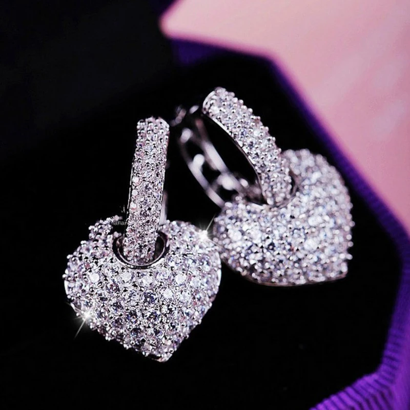 Model Number:Full Shining Crystal Zircon Heart Earrings For Women