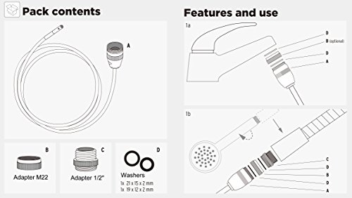 -. Feature : NO TOXIC AND NO CHEMICALS: Using high pressure water to clear the clogged pipe drains / HIGHT PRESSURE WATER: This item is with self-agitating brass nozzle and check valve (non-return value) construction which enhancing the water pressure for better cleaning effect / PRACTICAL: The item comes with 10ft. hose and 3-in-1 universal solid brass faucet adapter for easy use and 2 rubber ring which will make leaks a forgotten experience / BATHROOM NECESSITY: prepare it as a drain cleaner (or cleaning slow pipe drain before clogging) for easy life