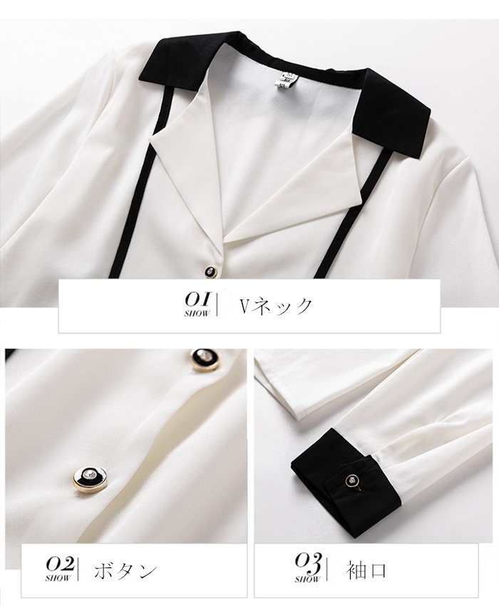 【商品説明】ビジネスをメインに、カジュアルでも着こなして頂けるようなベーシックでお洒落な仕上がりになっています。さらに、生地の密度を高め、透け感を和らげました。Vネックデザインでデコルテラインを美しく、すっきり小顔に見せてくれます。さらっとゆるテロなシルエットで大人可愛く、ボトムにインしてきちんと感も出せる便利アイテムです。【キーワード】とろみシャツ 体型カバー シフォンブラウス 長袖 白シャツ ホワイト 秋シャツ レディース シャツブラウス トップス シャツ シフォンシャツ Vネック とろみ シャツ キレイめ OLシャツ スーツコーデ スーツシャツ 通勤 オフィス ビジネス OL 事務服 カジュアル フォーマル シャツ 長袖シャツ 20代 30代 40代 50代 おしゃれ ファション 大きいサイズ L 2L 3L★カラー:白★サイズ(CM):M:バスト94 肩幅37.5 袖丈56 着丈61L:バスト98 肩幅38.8 袖丈57 着丈62XL:バスト102 肩幅39.5 袖丈58 着丈63XXL:バスト106 肩幅40.5 袖丈59 着丈64※サイズは人の手によって測っているため、1-3cmの誤差がある場合がございます。予めご了承下さいませ。