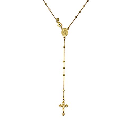-. Title : 14K Yellow Gold Plated Sterling Silver Rosary Necklace 2.5mm Bead Cross Italian Rosary Chain ( 16"~24" )