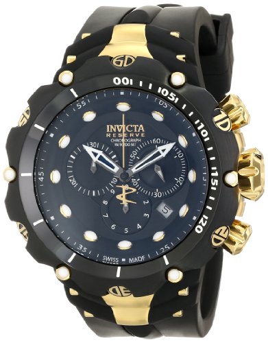 -. Binding : Watch -. Brand : Invicta -. Color : black -. Department : mens -. EAN : 0843836015219 -. Feature : Swiss quartz movement / Flame fusion crystal; 18k gold ion-plated stainless steel case; black rubber strap / Chronograph functions with 60 second, 30 minute and day of the week subdials; date window between 4:00 and 5:00 / Black dial with gunmetal, gold tone and white hands and gold tone and white hour markers; luminous; unidirectional black ion-plated stainless steel bezel; screw-down crown and pushers / Water resistant to 660 feet (200 M): suitable for recreational scuba diving -. Label : Invicta -. Manufacturer : Invicta -. Model : 1521 -. MPN : 1521 -. PackageQuantity : 1 -. PartNumber : 1521 -. ProductGroup : Watch -. ProductTypeName : WATCH -. Publisher : Invicta -. ReleaseDate : 2014-01-22 -. Studio : Invicta -. Title : Invicta Men's 1521 Venom Analog Display Swiss Quartz Black Watch -. UPC : 843836015219