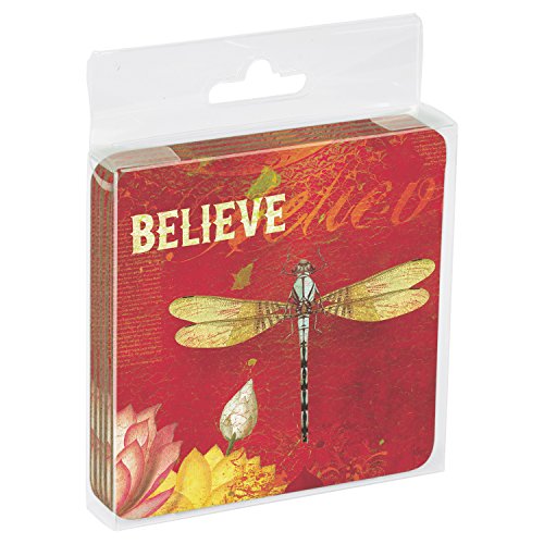 Tree-Free Greetings Set Of 4 Cork-Backed Coasters, 3.75 x 3.75 Inches, Believe Themed Dragonfly Art (52548)