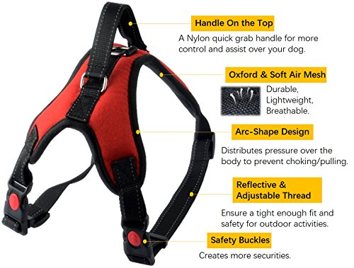 5.Available in Various Sizes Including S,M,L,Extra-Large. Our adjustable dog harness is suitable for small dogs, medium dogs, large dogs, such as Golden Retriever, Labrador, German Shepherd, American Bully Pit-Bull, Husky, Alaskan Malamute, Giant Poodle,Terrier and more.