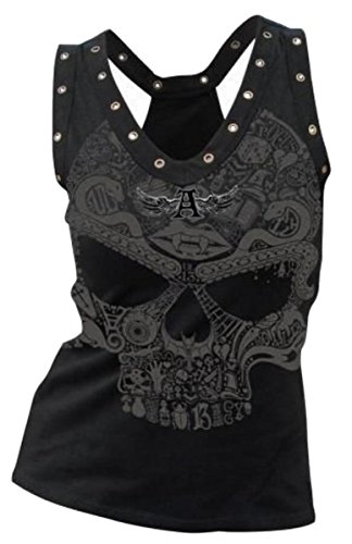 -. Title : maweisong 女性のプラスサイズのスカルプリントタンクトップシャツそでなしのリベット