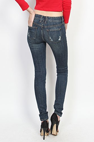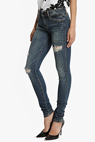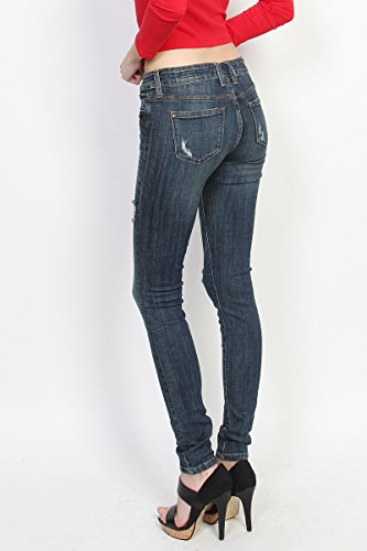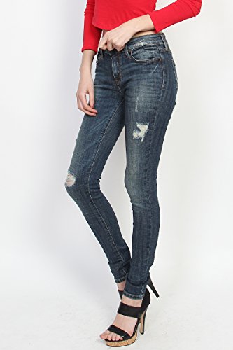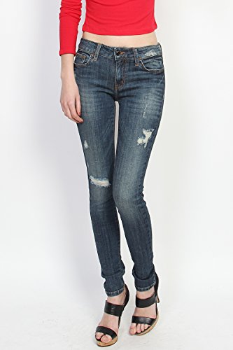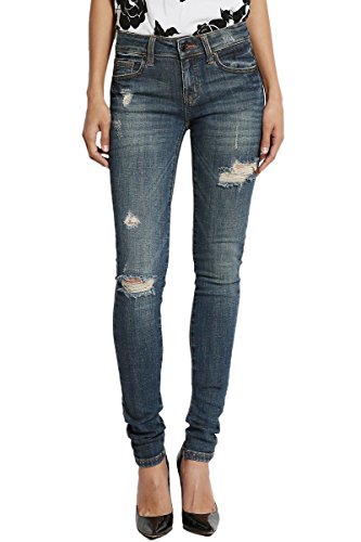 Binding : Apparel Product Description Slashed at the knees, these toughed-up skinny jeans flaunt a lived-in look that's forever cool. With a mid-rise and hugging stretch fit, these skinnies make yer stems look extra long while makin¢®? yer hips look seriously priceless. Team with strappy heels and crop tops. 5 pockets styling ; Mid rise ; Skinny legs ; Front zip fly with button closure ; Distressed details ; 98% cotton, 2% spandex ; Made in United States ; Model size : 5' 8"height, 32" bust, 24" waist, 36" hip, and is wearing a size US 33 0