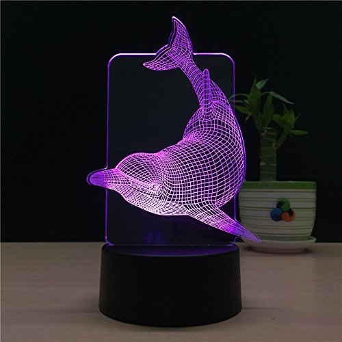 TTqp 3D LED Desk Table Dolphin Night Light Lamp 7 Color Touch Lamp Kiddie Kids Children Family Holiday Gift Home Office Childrenroom Theme Decoration