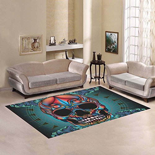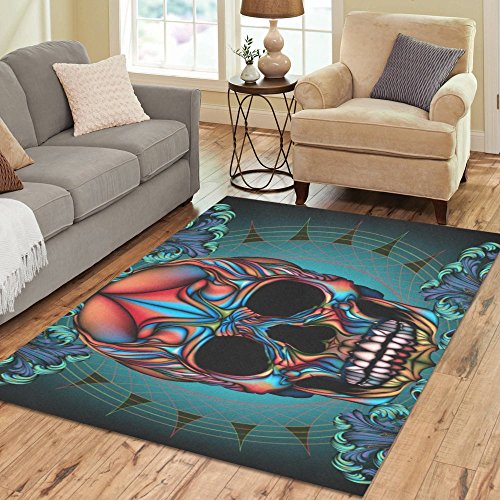 InterestPrint Floor Rugs Mat Custom Colorful Skull Area Rugs Modern Carpet for Home Dining Room Living Room Decoration Size 7'x5'