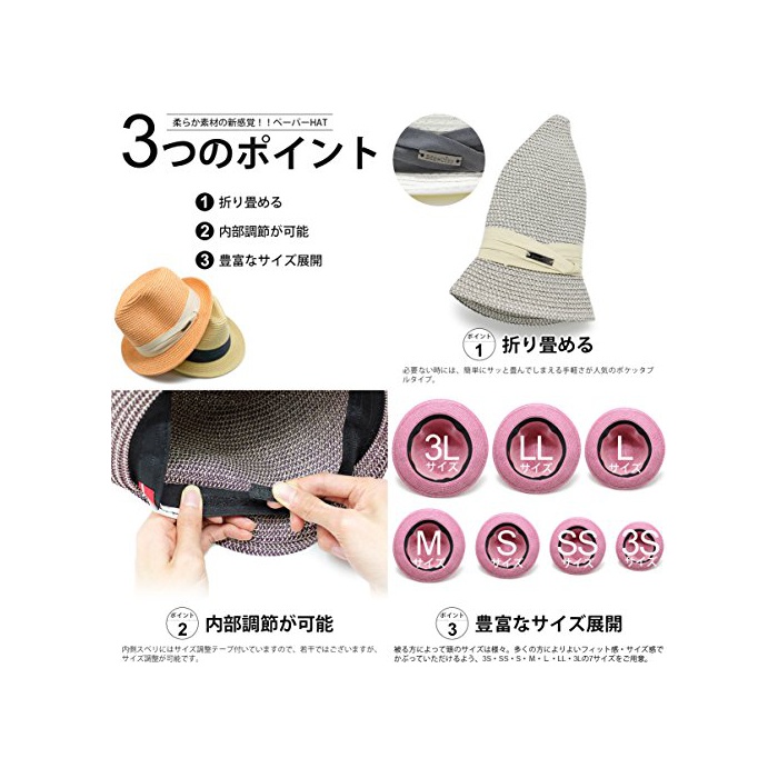 원본상품명: ハット メンズ 折りたたみ わら帽子 レディス キッズ XL SS 大きいサイズ 春夏 MIXペパポケッタブルハット