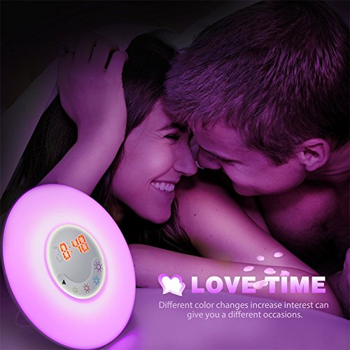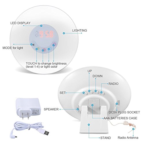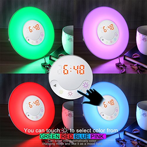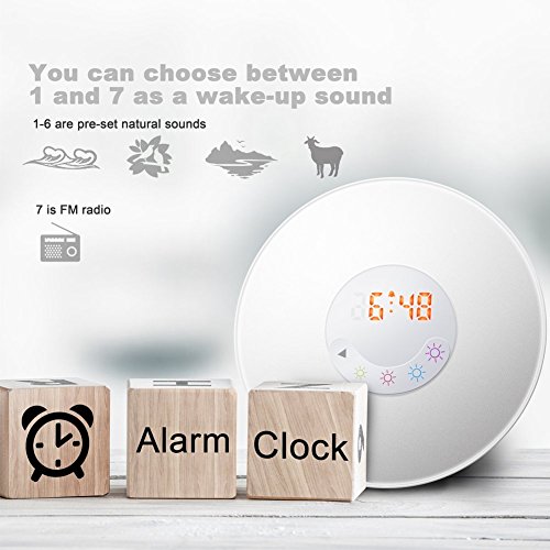 6 Sounds Alarm Clock - Including 6 natural sounds such as forest, birds, waves and so on, which let you revel in the sounds and smells of the nature. As well as 1 FM radio. You can choose your favorite sound.