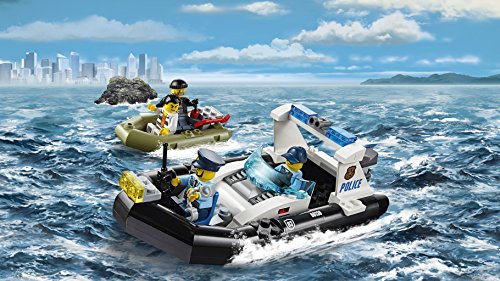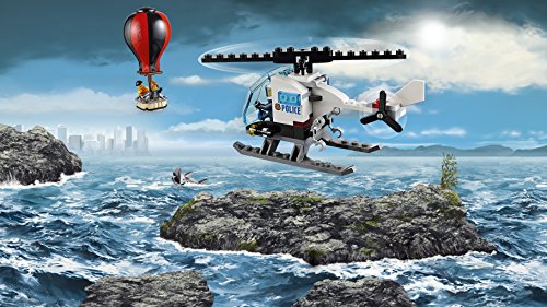 -. Feature : Enthält 8 Minifiguren: einen Polizisten, eine Polizistin, einen Polizeichef, einen Polizeipiloten, 3 Ganoven sowie eine Ganovin. / Enthält ein Gefängnis, einen Hubschrauber, ein Polizeiboot, ein Boot für die Ganoven sowie einen Heißluftballon. / Das Gefängnis besteht aus einem zweigeschossigen Bauwerk mit Hubschrauberlandeplatz, Wachturm und Gefängnishof und verfügt über Überwachungskameras und Suchscheinwerfer, eine Gefängniszelle, einen Anleger sowie Fluchtwege durch die Kanalisation mit Ausbruchfunktionen. / Der Hubschrauber verfügt über drehende Rotoren und ein aufklappbares Cockpit, in dem eine Minifigur Platz findet.