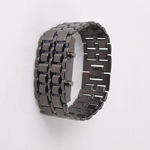 -. Brand : DMTRADE -. Feature : This is a iron samurai japanese inspired faceless red LED wrist watch, looks like a bracelet, faceless design, cool and fashion. / Function buttons: hour and date display + select, change mode. / 12-hour / 24-hour displaying system selectable. / Power: 1 x CR2016 button battery. / LED color: blue, red. -. Label : DMTRADE -. Manufacturer : DMTRADE -. MPN : 012008 -. PartNumber : 012008 -. ProductGroup : Sports -. ProductTypeName : OUTDOOR_RECREATION_PRODUCT -. Publisher : DMTRADE -. Studio : DMTRADE -. Title : DMTRADE Stylish Trendly Amazing Led Digital Watch Lava Necessary For Gentlemen