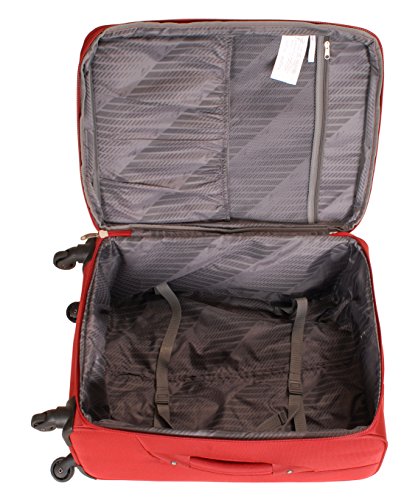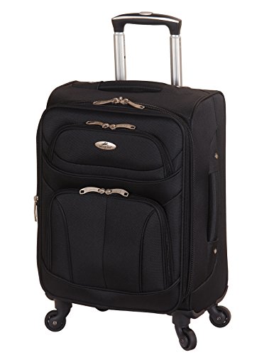 Product Description Our FeatherLite collection of premium expandable spinner luggage is designed for lightweight performance and durability. The 360° pivoting spinner wheels enable effortless movement in all directions while the interior tie-down straps and zippered lid pockets keep your packed items secure. Convenient zippered pockets on the front provide quick and easy access to airline tickets, documents, or a light jacket. 0