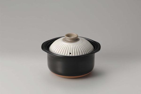 | 炊飯土鍋は熱のあたりが柔らかく蓄熱性が高いので、お米を包むように熱を伝えます。遠赤外線効果に加え二重蓋による圧力効果で、美味しいご飯が炊きあがります。火を止める時間を少し伸ばせば、香ばしい匂いと共におこげも楽しめます。また、煮込み料理にも使え、じっくり柔らかに煮込むことができます。持ち手が大きく滑りにくいデザイン。食品衛生法に適合(鉛、カドミウム不使用)しています。 |